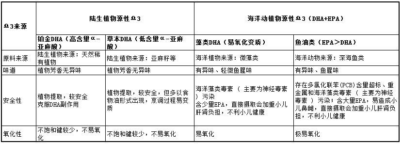 DHA类制剂易受海洋藻类毒素(主要为神经毒素)污染;直接摄入DHA可影响体内“脱饱和酶”和“碳链延长酶”的功能,抑制其活性,影响孩子体格生长;DHA极易氧化、易产生脂质过氧化作用,导致过氧化物值升高,对肝脏、肾脏产生不利影响。